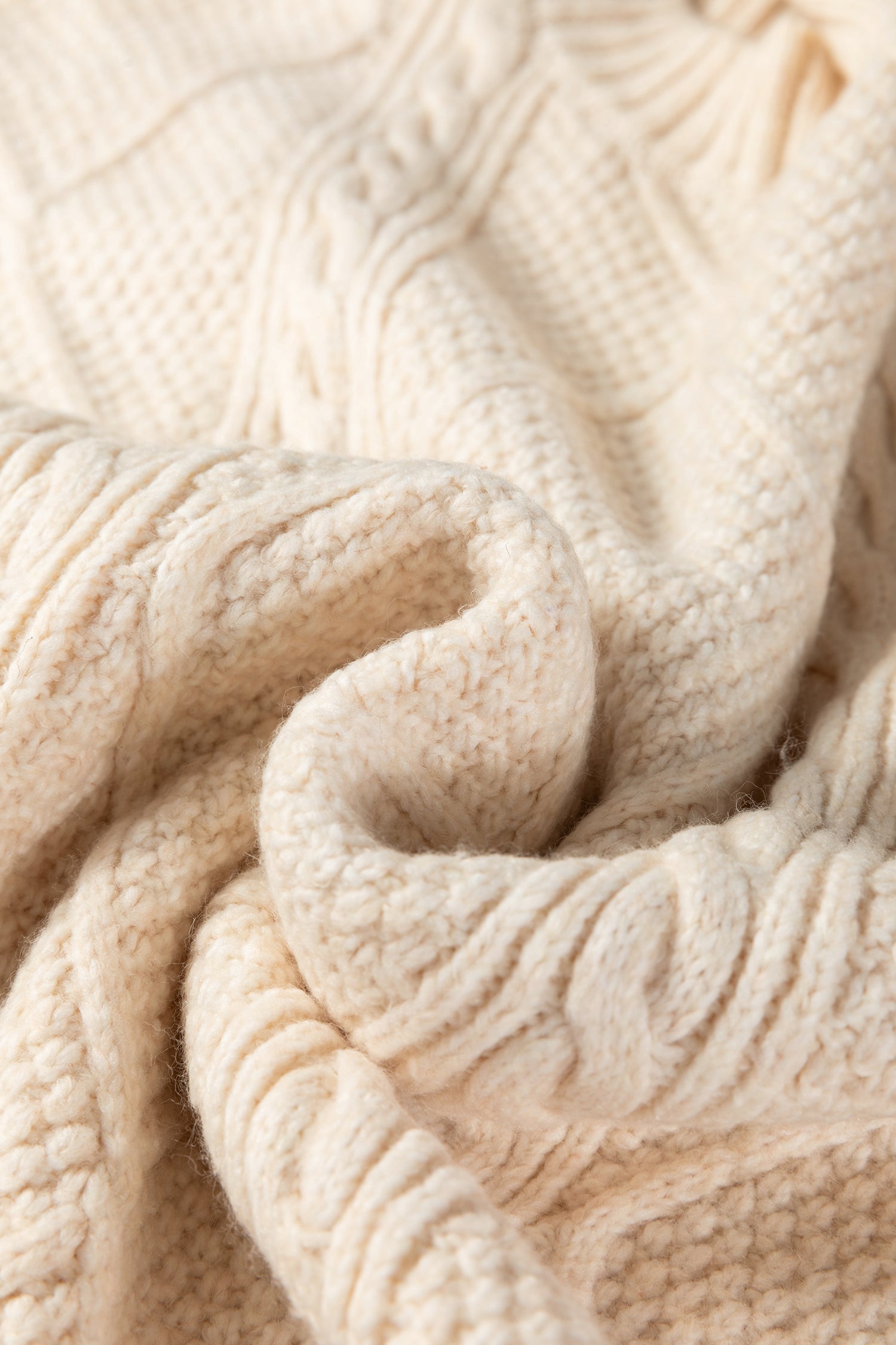 Intricate cable knit detailing for a cozy yet stylish look.